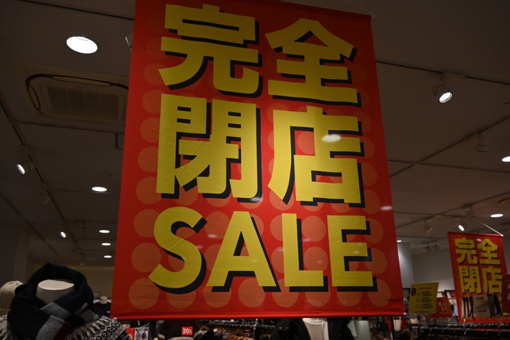 店頭には、完全閉店セール告知がされています。