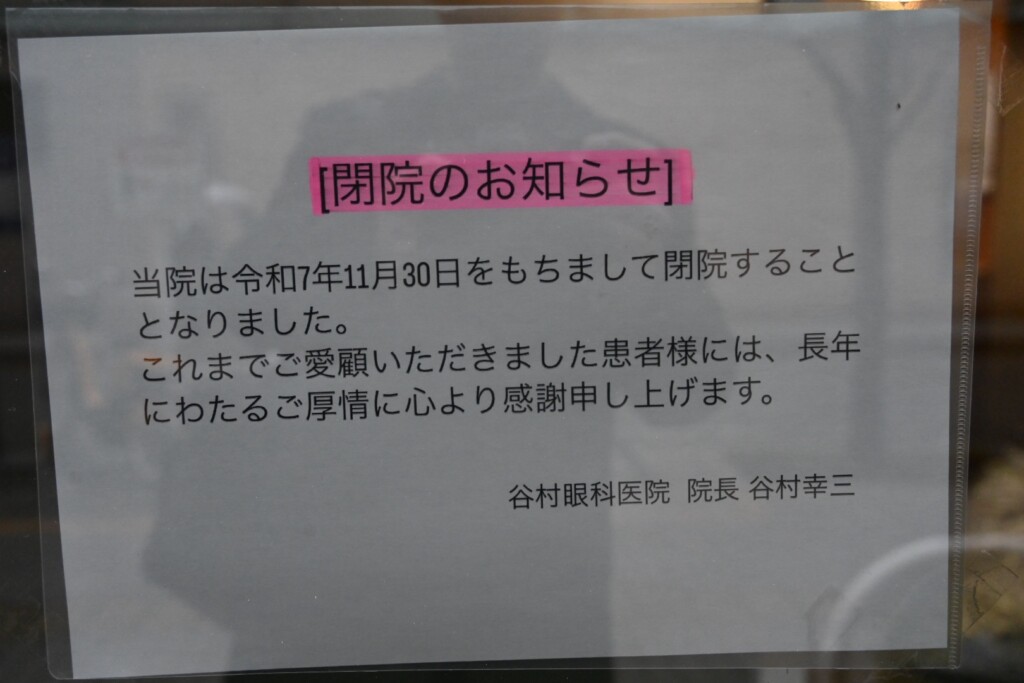 川西市中央町の谷村眼科医院が11/30で閉院したみたい。