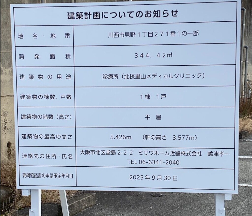 東谷中学のすぐ隣に北摂里山メディカルクリニックができるようです!