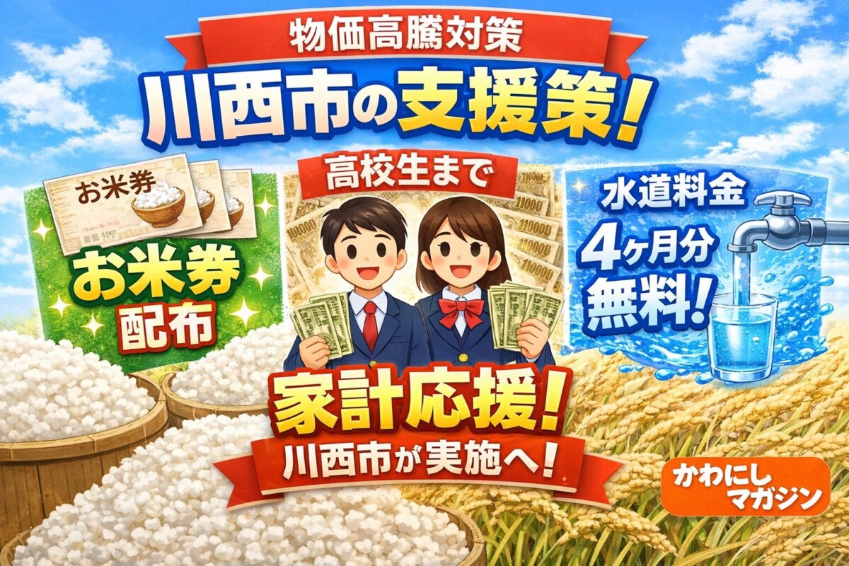 川西市が物価高騰対策で、4ヶ月分の水道基本料金無料、高校生年代までの児童1人に2万円支給、1人あたり4840円のお米券配布を決めたようです!