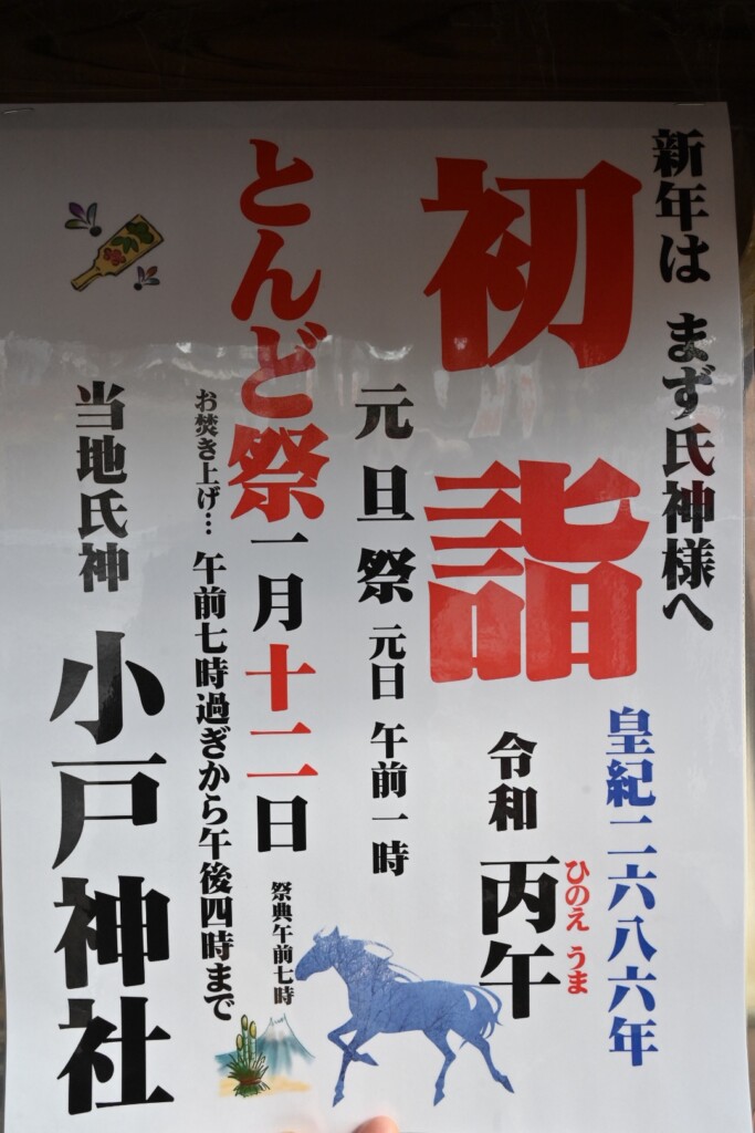2026年1月12日(月祝)、小戸神社でとんど祭りが開催されるみたい。