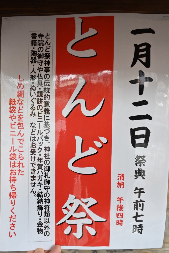 とんど祭のお焚き上げは午前7時から午後4時までとなっています。