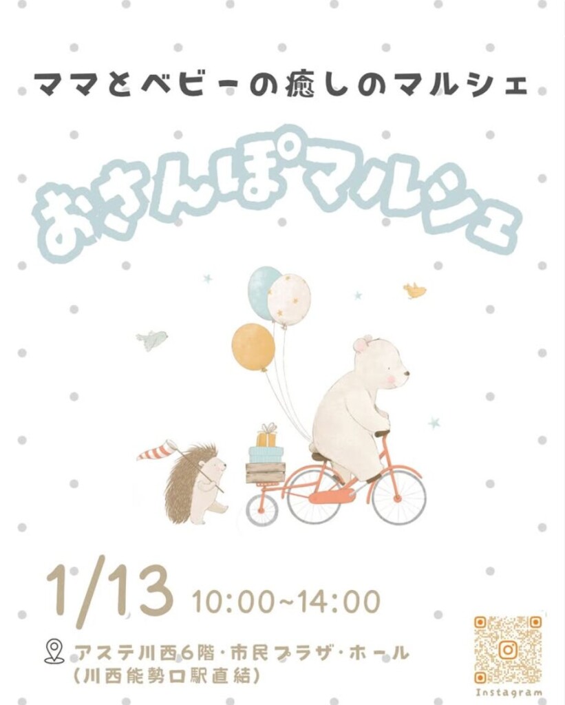 1/13(火)、アステ川西6階市民プラザ/ホールで、おさんぽマルシェが開催されるようです!