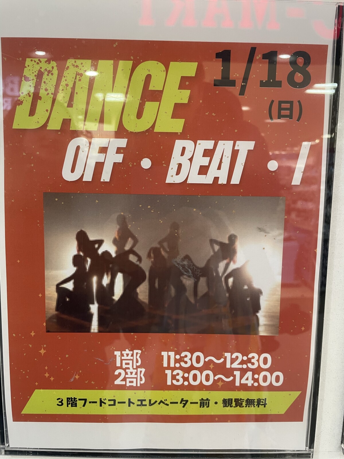 1/18(日)、イオンモール猪名川でDANCE OFF BEAT Iが開催されるみたい。