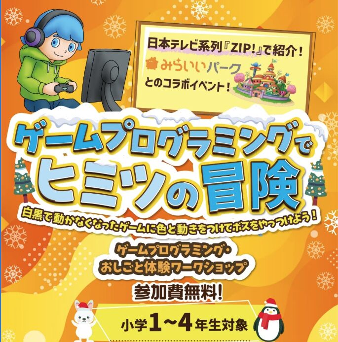 1/31(土)、川西市商工会館で「ゲームプログラミングでヒミツの冒険」が開催されるみたい。