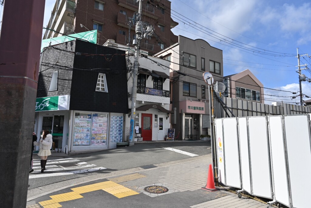 解体がほぼ終わった西友川西店の跡地から、花屋敷方面へ向かいます。