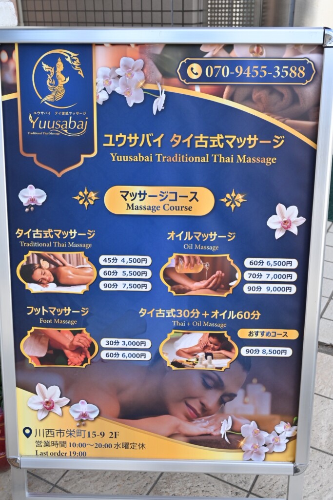 1/16(金)、西友川西店跡地横にユウサバイっていうタイ古式マッサージ店がオープンしたみたい。