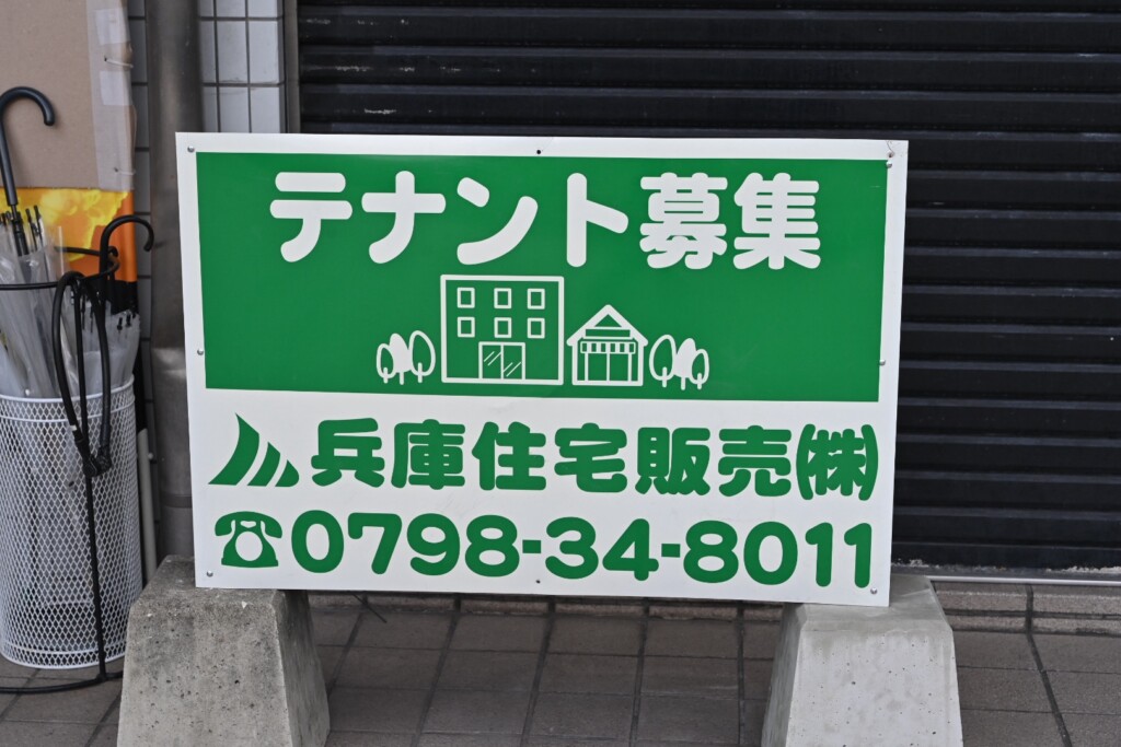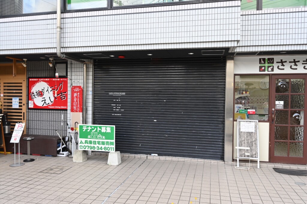 お店はすでにシャッターが閉まっていて、テナント募集中になっています。