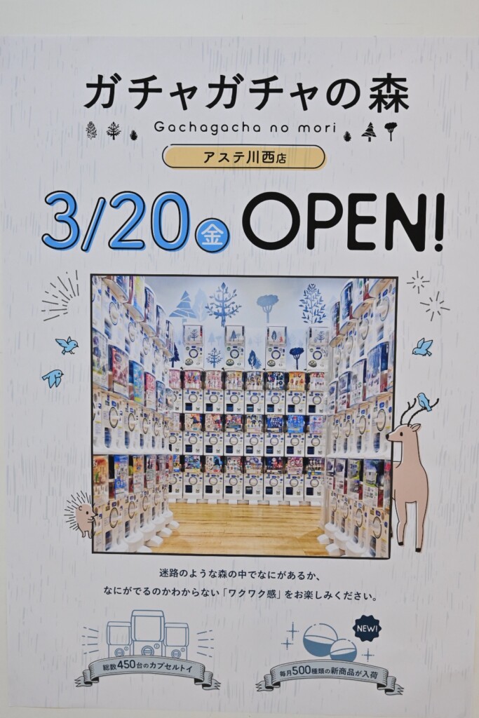 3/20(金)、アステ川西1階にガチャガチャの森がオープンするようです!