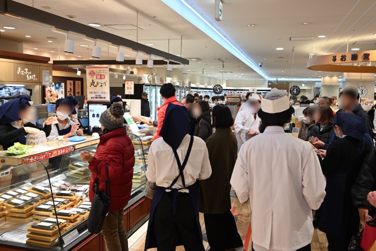 2/3(火)、川西阪急スクエアの恵方巻き争奪戦の様子見てきた。