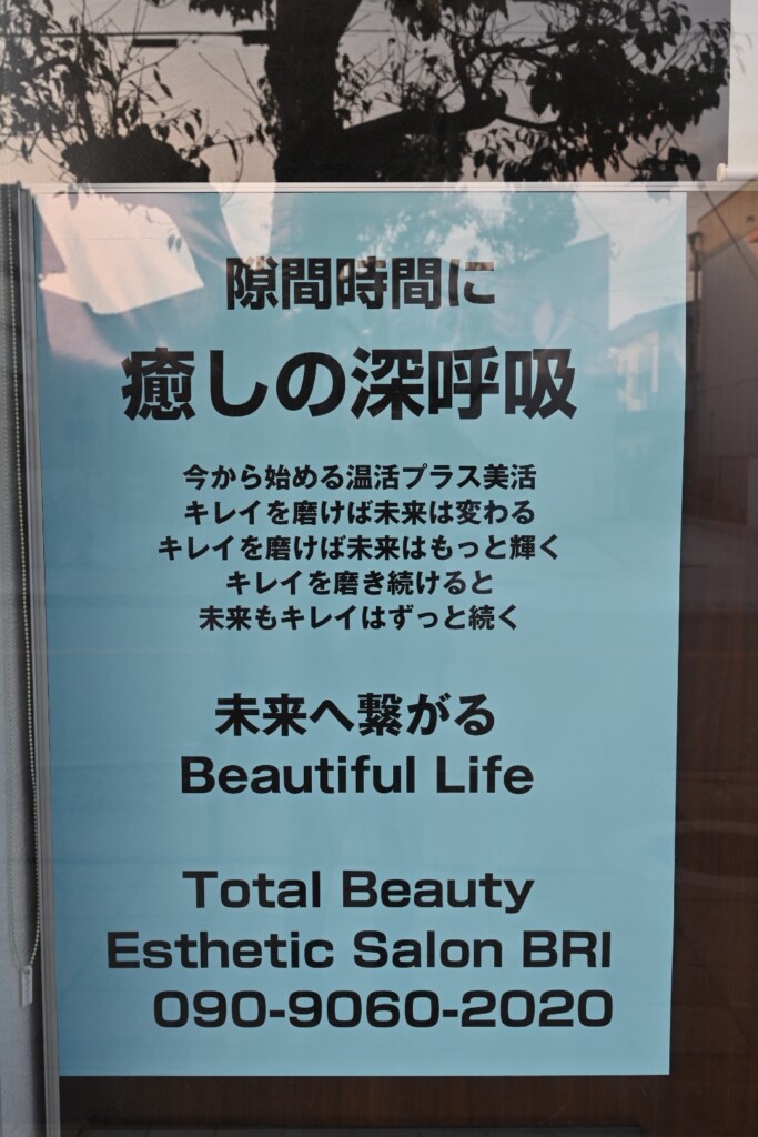 2/1(日)、川西市向陽台にTotal Beauty Esthetic Salon BRIっていうエステサロンがオープンしてる。