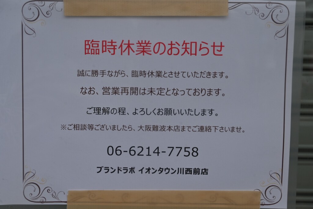 ブランドラボ イオンタウン川西前店が閉店したみたようです。