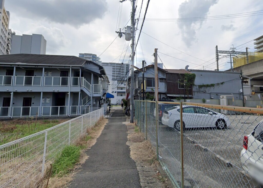 すぐ北側には阪急の線路が走っていて、コインパーキングのSuper jpmがあります。
