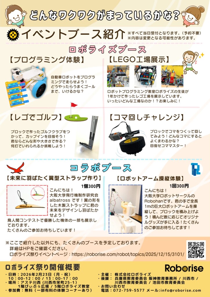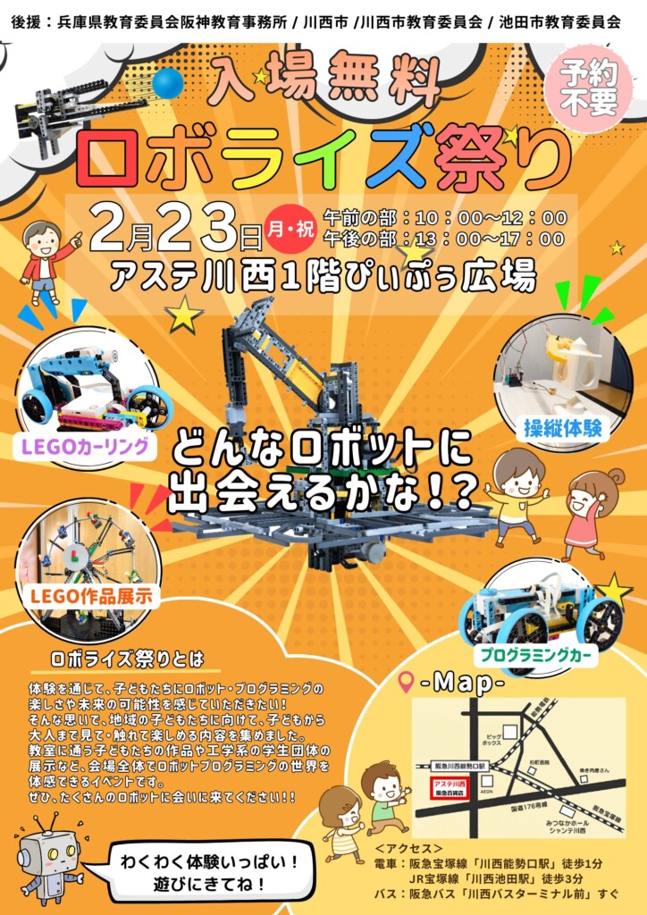 2/23(月)、アステ川西1階ぴぃぷぅ広場で、ロボライズ祭り2026が開催されるようです!