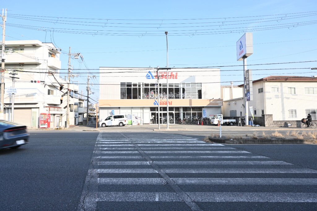 正面には自転車屋のasahiがあります。