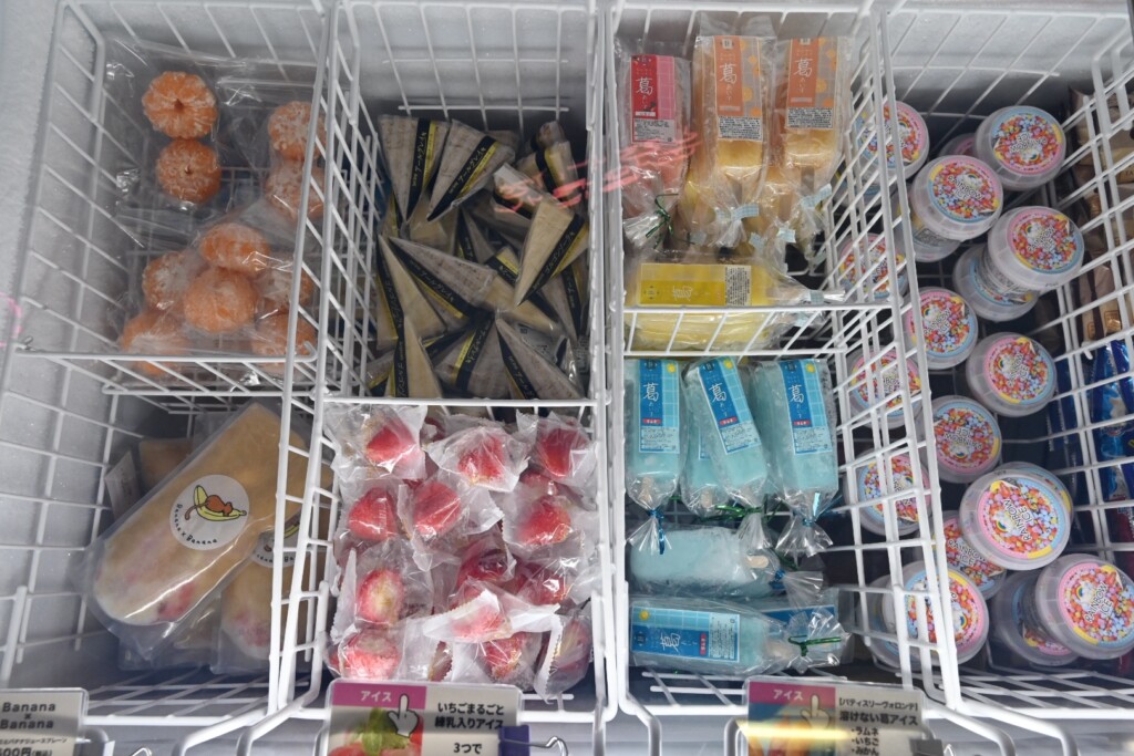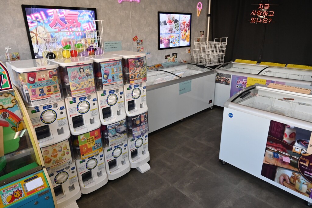 冷凍のスイーツだけでなく、ガチャガチャが置いてあったり
