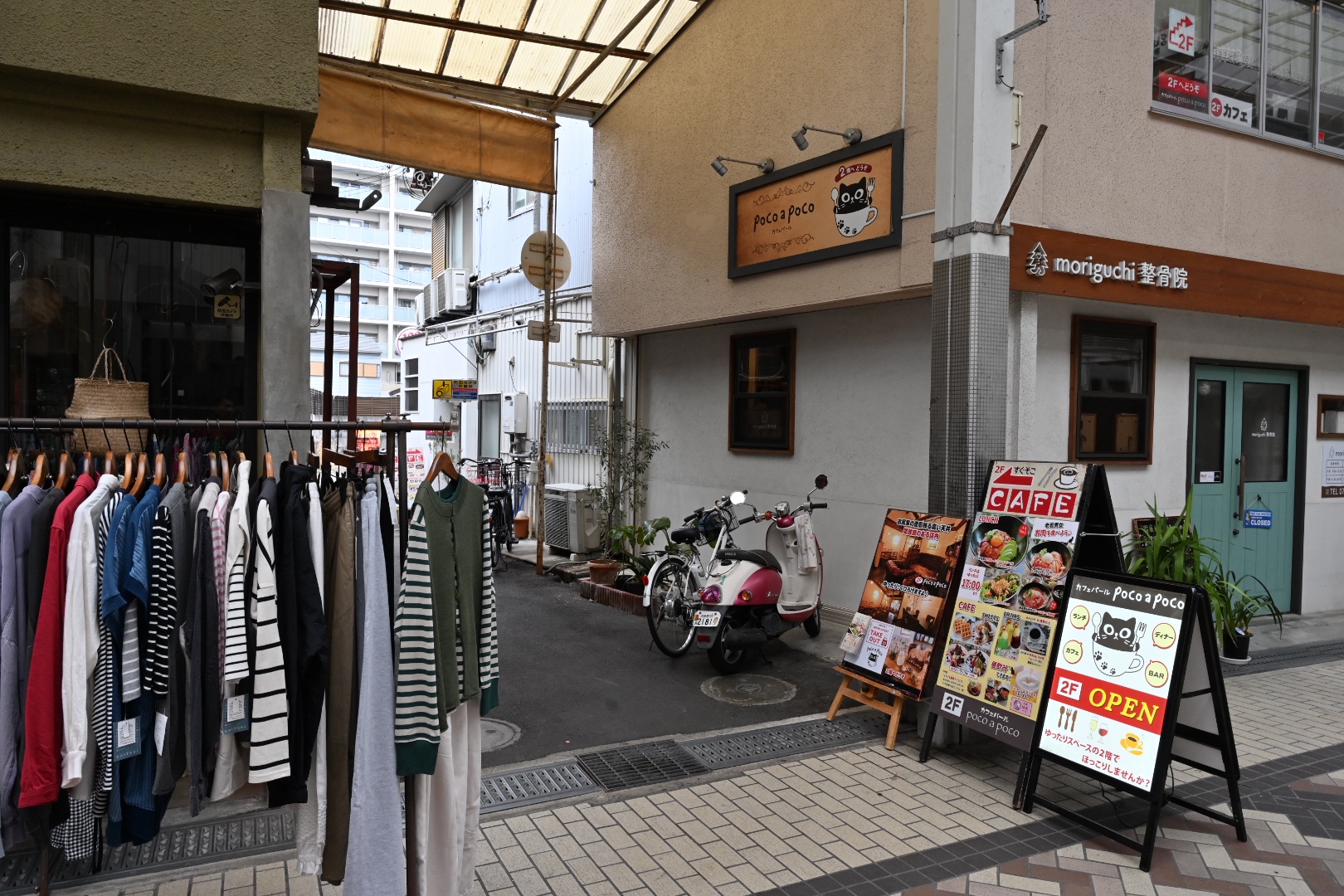 商店街の通路に看板があるので、すぐに分かるはず。