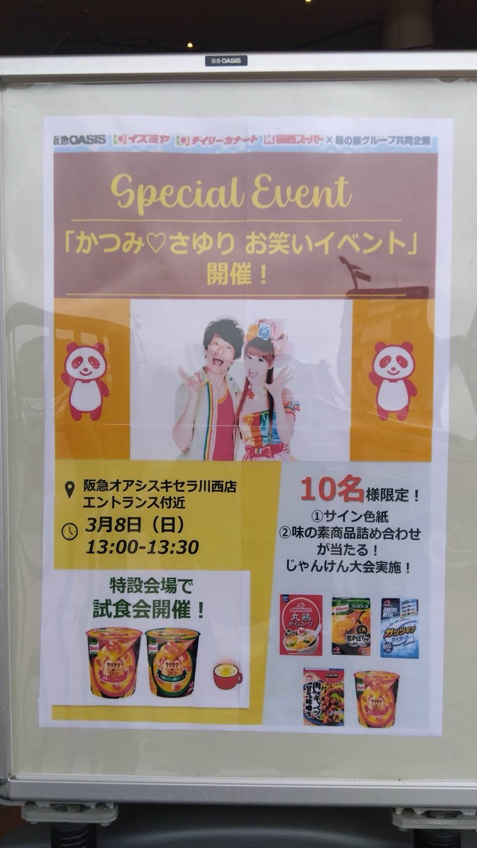 3/8(日)、オアシスタウンキセラ川西にかつみ♡さゆりが来るみたい。