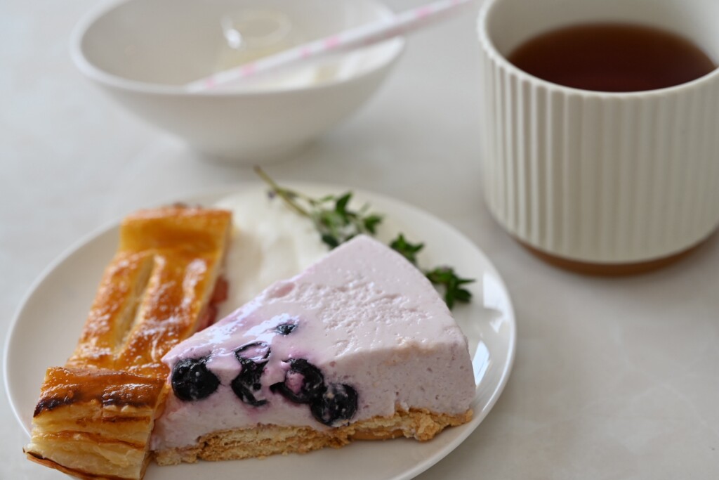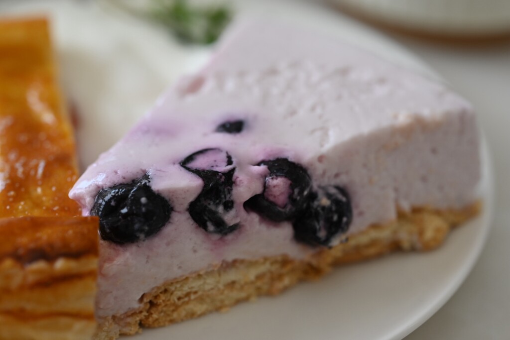 ケーキはブルーベリーのヨーグルトムースと、3種のフルーツパイにしました。