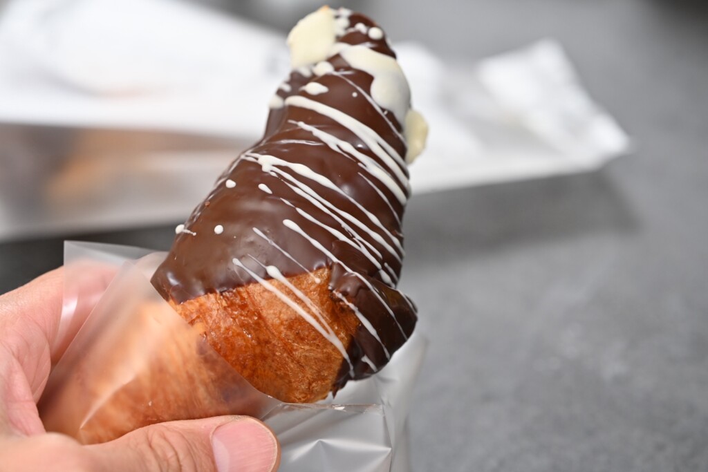 チョコのかかった部分を食べた後、クロワッサンだけになると寂しいのかと思いきや、ちゃんと生地が美味しいので少し爽やかにして終われるという後味もなかなかに良いです。