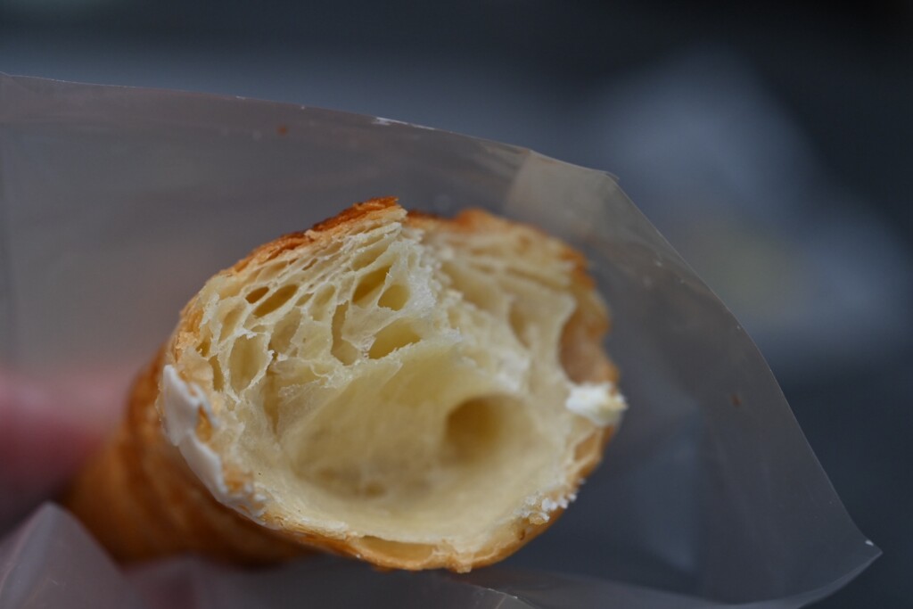 ちなみにこのクロワッサン、袋に入っていますが、なるべくそのまま袋で持って食べるのを推奨します。