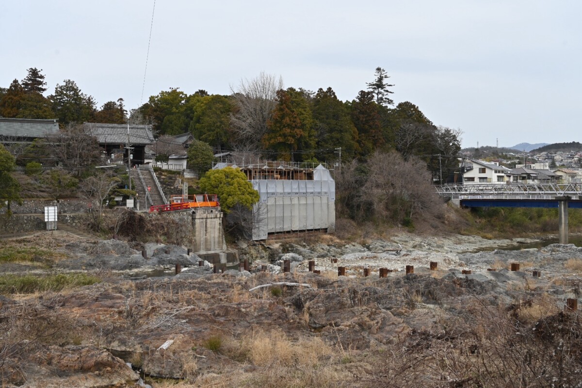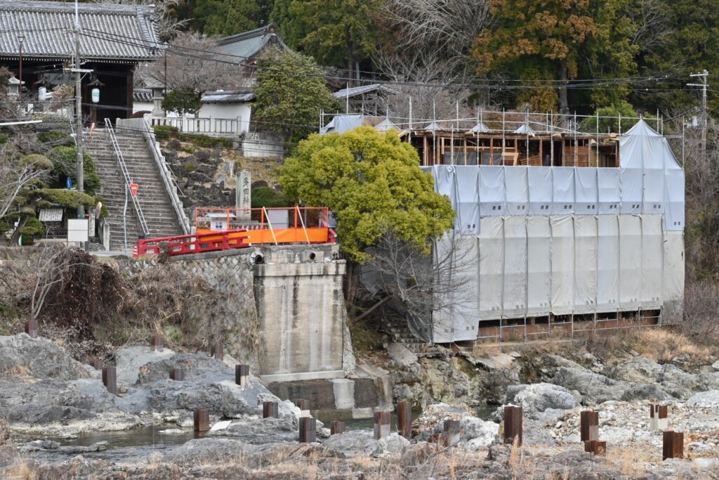 2027年5月末完成予定だった多田神社前の御社橋の架け替え工事が、2030年9月まで延長になった事は前回お知らせしましたが、現地ではついに旧赤橋が完全に撤去されたようです。
