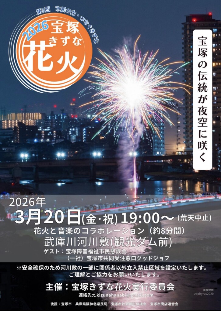 3/20(金・祝)、2026 宝塚きずな花火が開催されるようです!