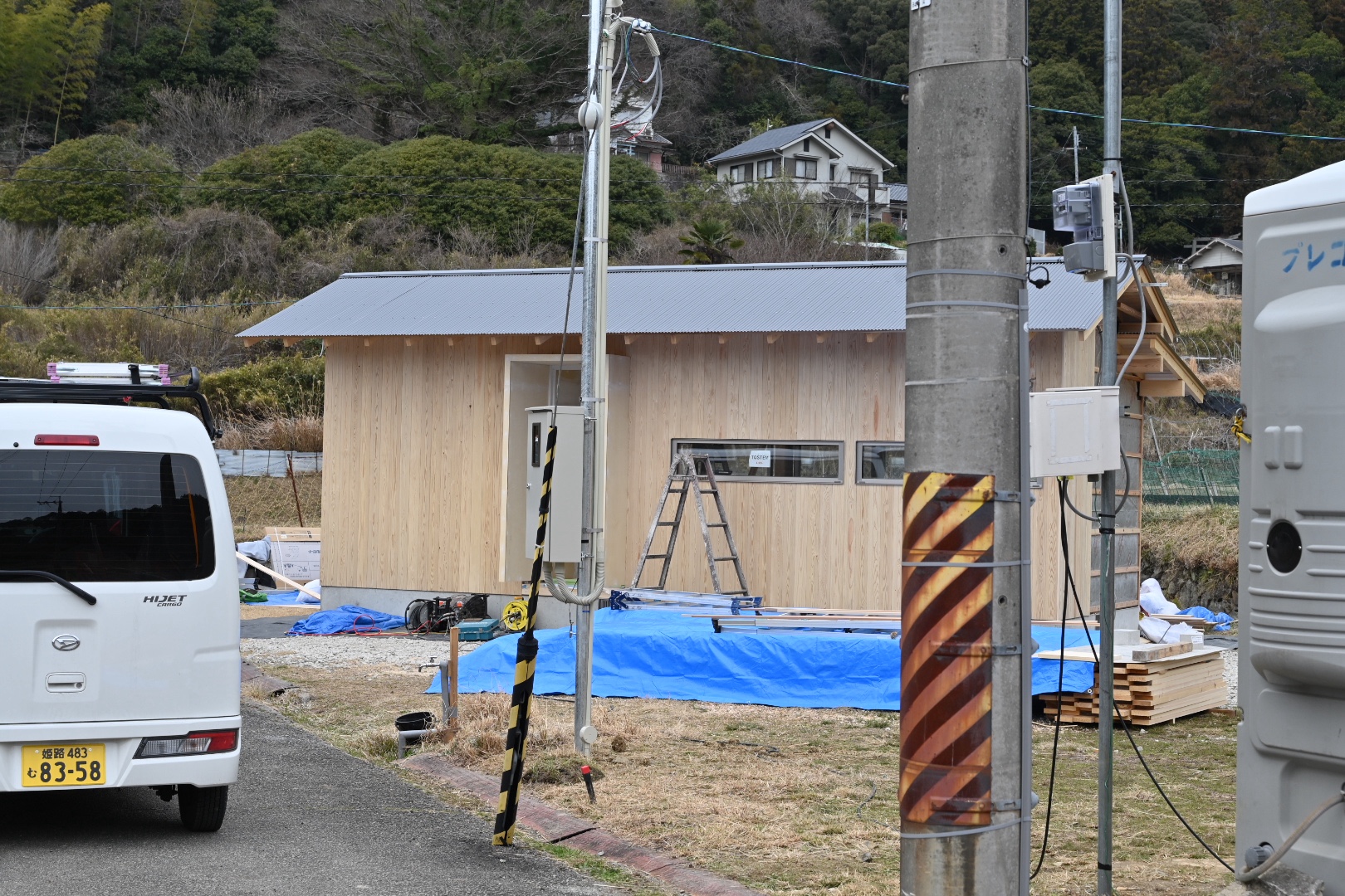現地では作業が進んでいて、何やら木造の建物を作っています。