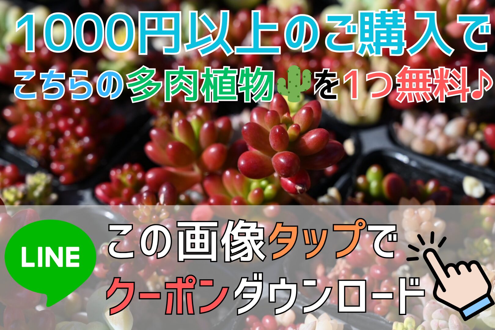 更に、こちらのクーポンで1000円以上の購入でお店指定の多肉植物が1つ無料になります。