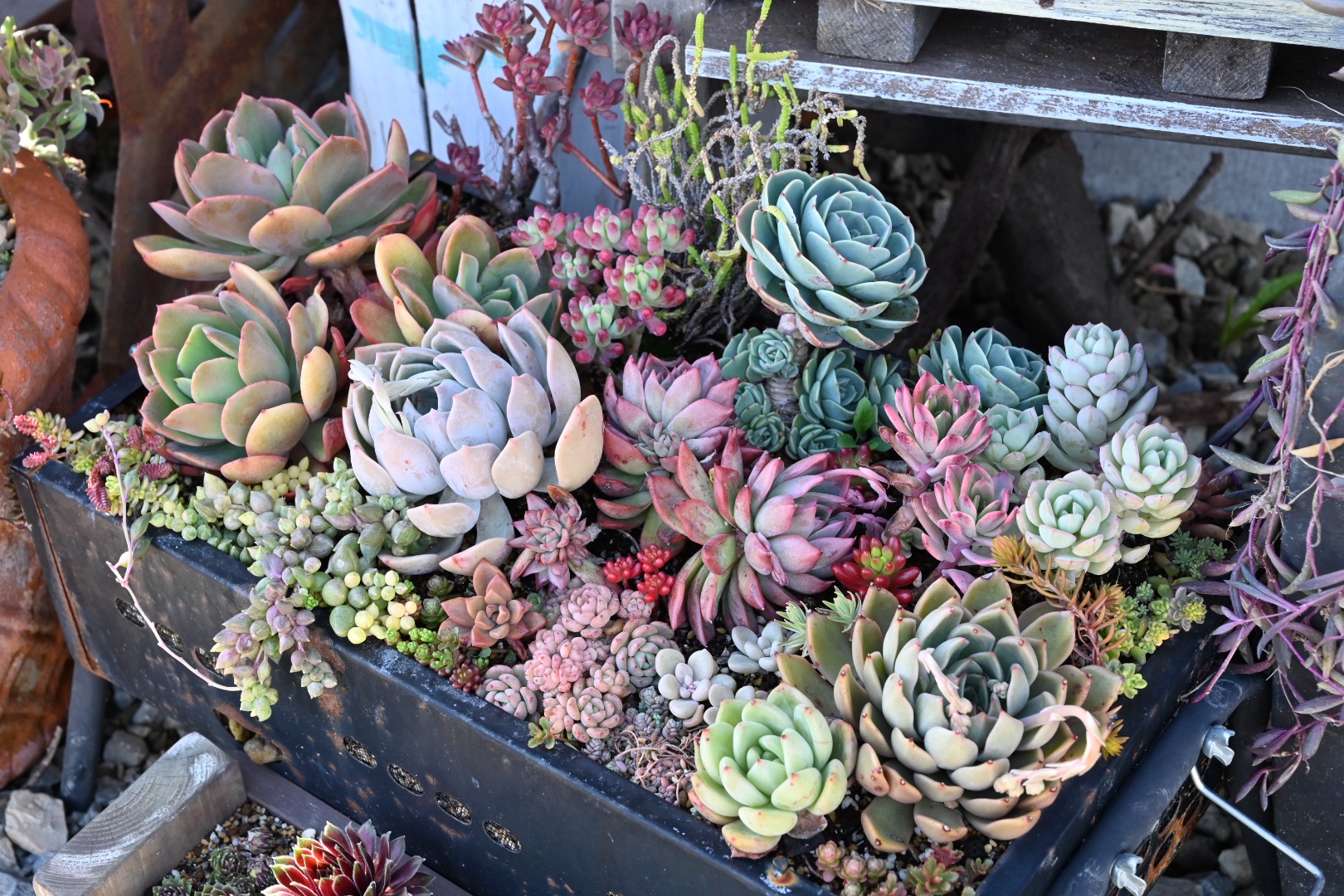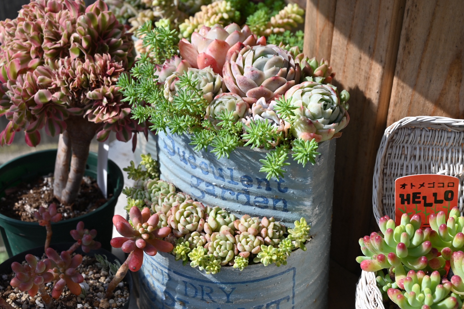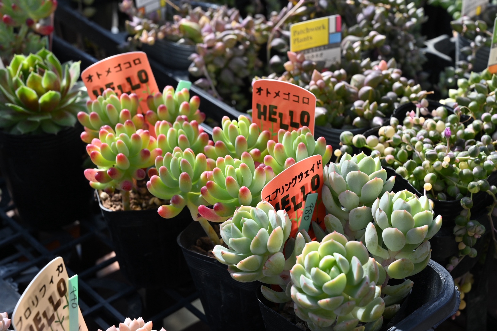 うにうにとたくさん生えた多肉植物、種類がめちゃくちゃあります。
