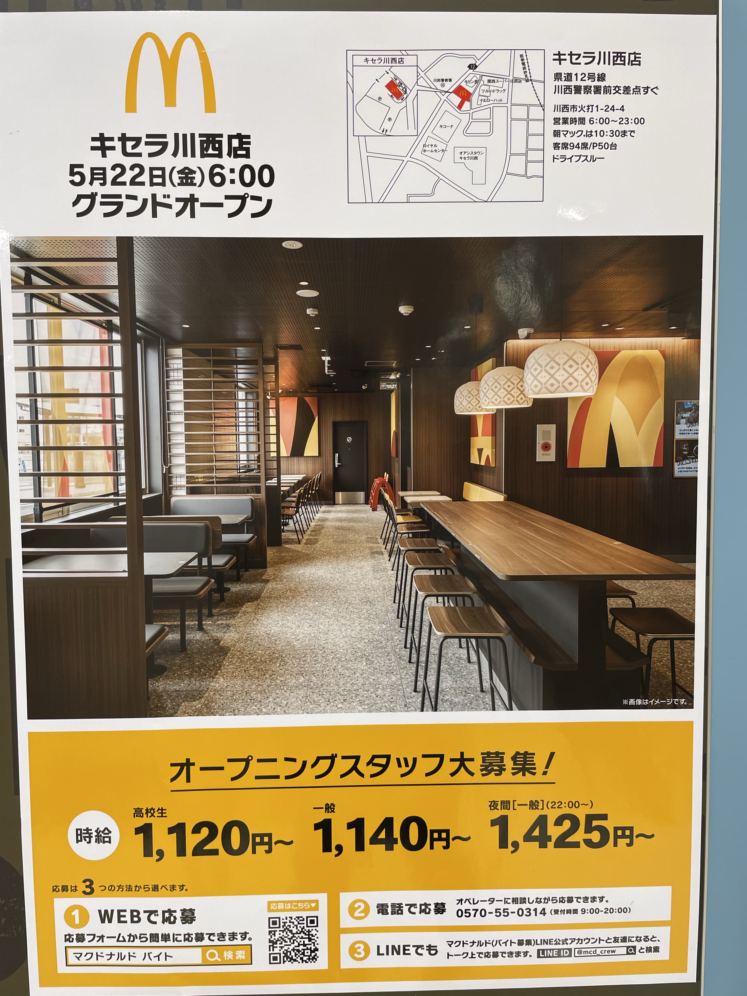 ちなみにキセラ川西店のオープン日の告知も貼ってありました。