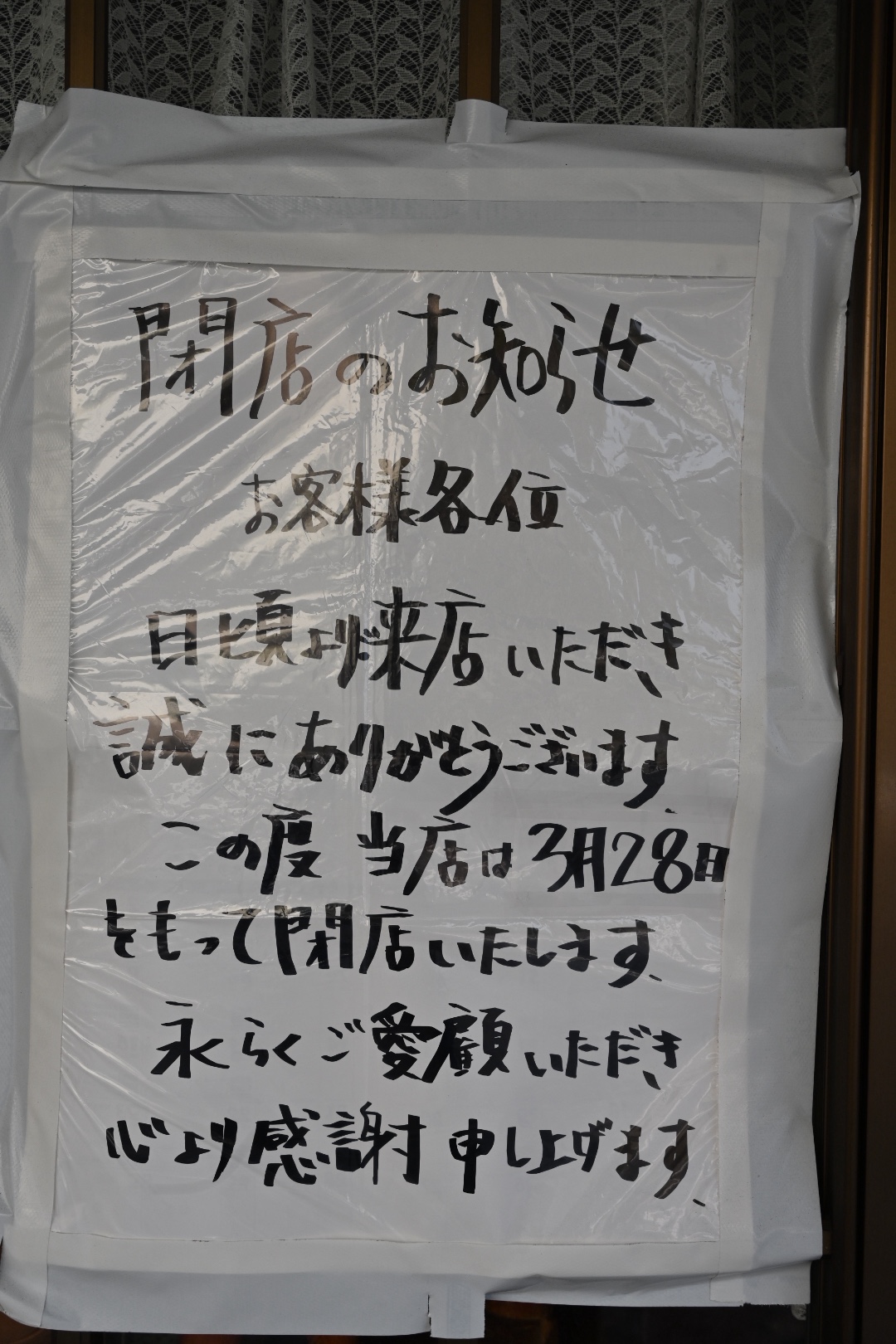 店頭には、3月28日で閉店した告知が貼ってあります。