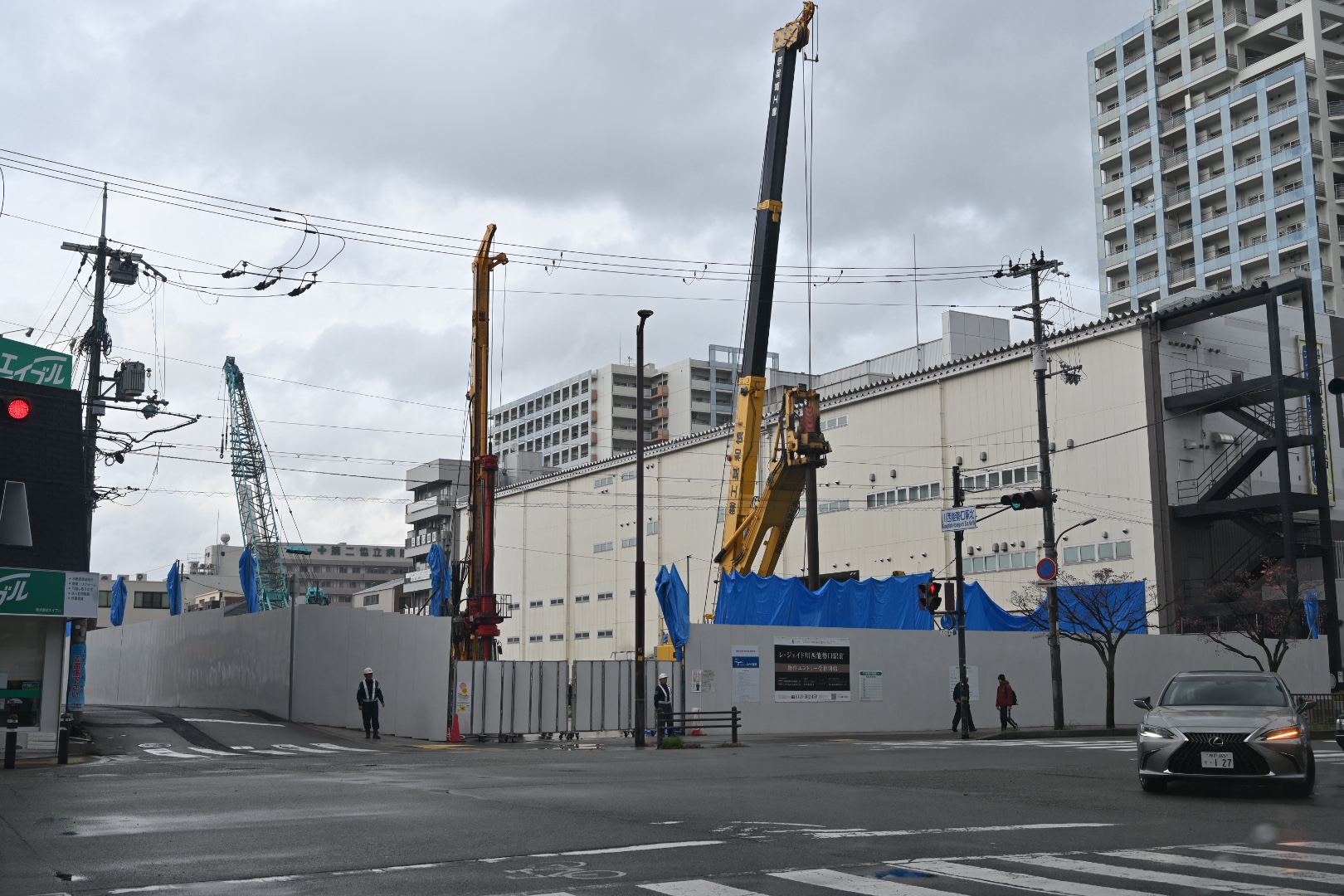 マンション建設のためボーリング工事の始まった西友跡地から花屋敷方面へ向かいます。