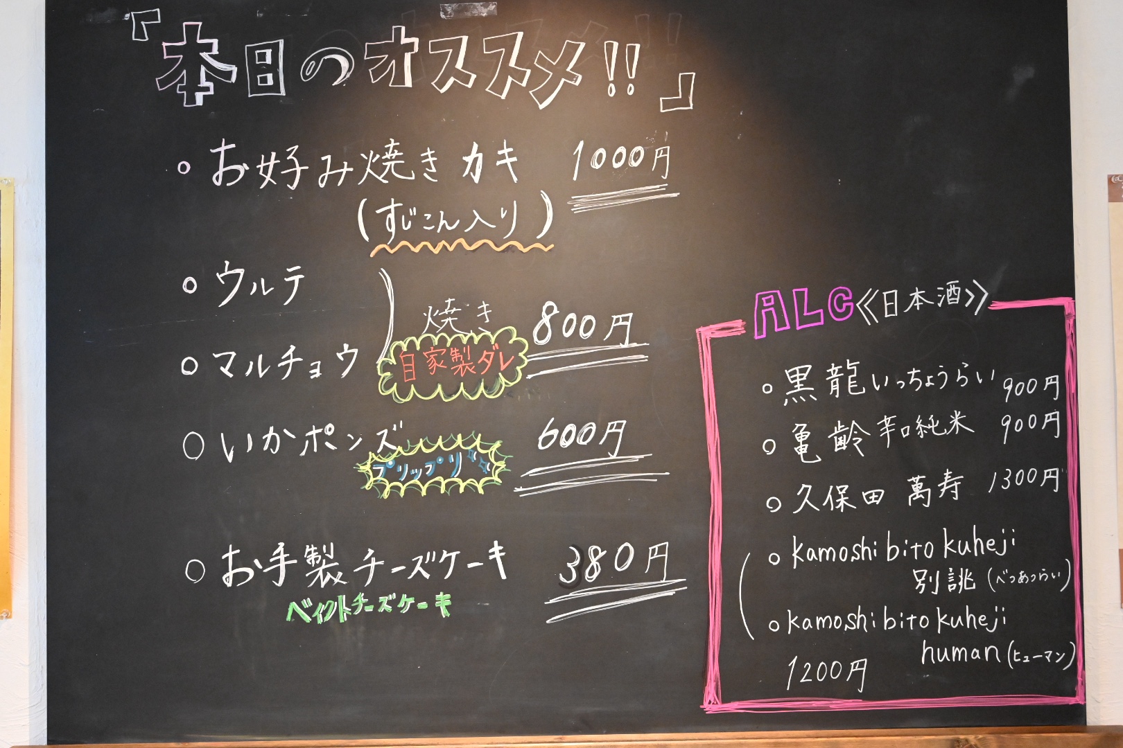こちらは店内看板の本日のおすすめ。