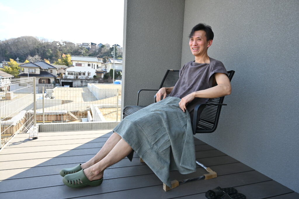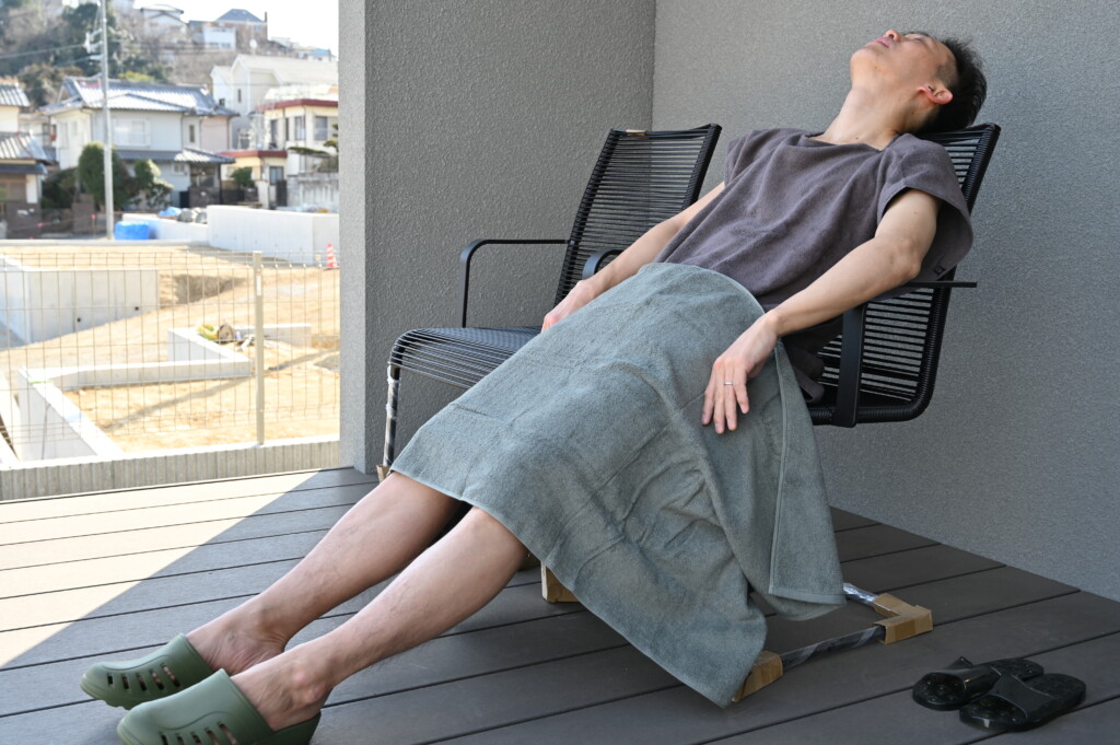 サウナで芯まで温まったあと、ベランダで涼んでみます。