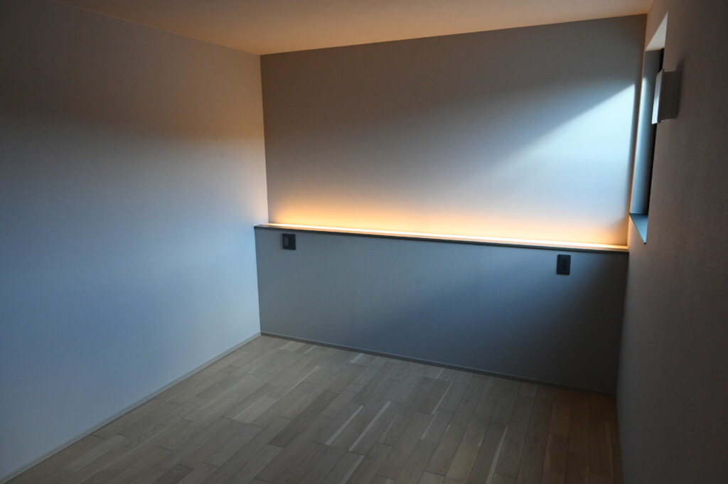 天井にはあえて照明をつけず、暗さが落ち着く空間に仕上がっています。