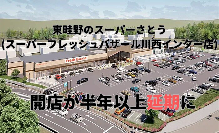東畦野で工事中のスーパーさとう(スーパーフレッシュバザール川西インター店(仮称))の開店が大幅に遅れるようです。