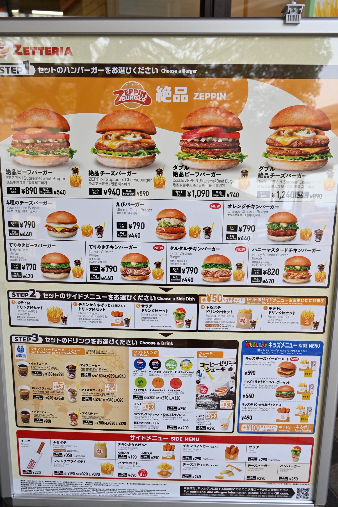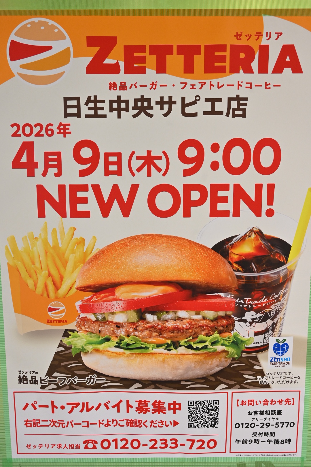 ロッテリア日生中央サピエ店がリニューアルのため閉店した事は前回お伝えしましたが、4/9にゼッテリアとしてオープンしていたので、早速行ってきましたよ。