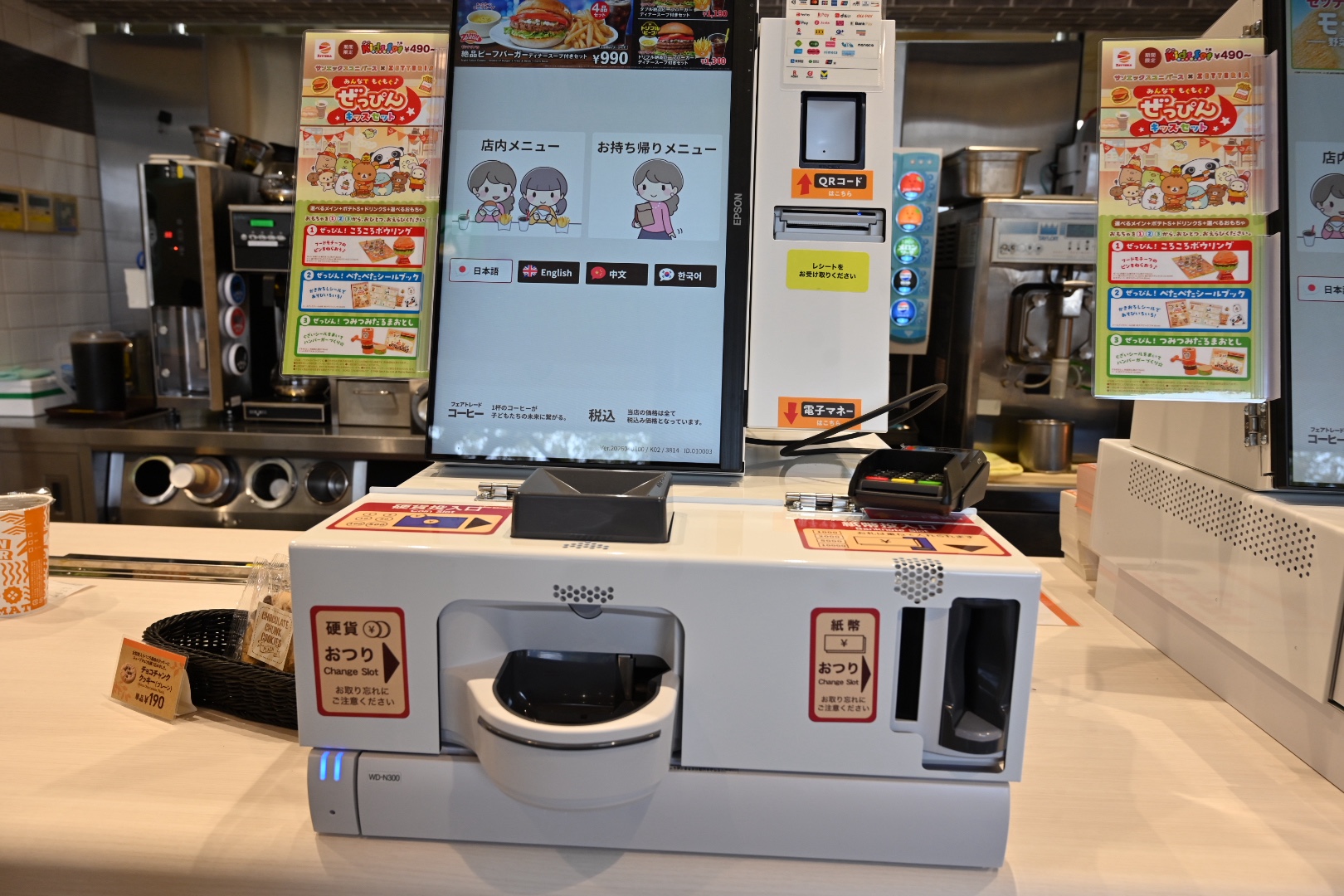 このあたりの操作性は、現金だけはカウンターで支払うマクドよりも便利になってます。