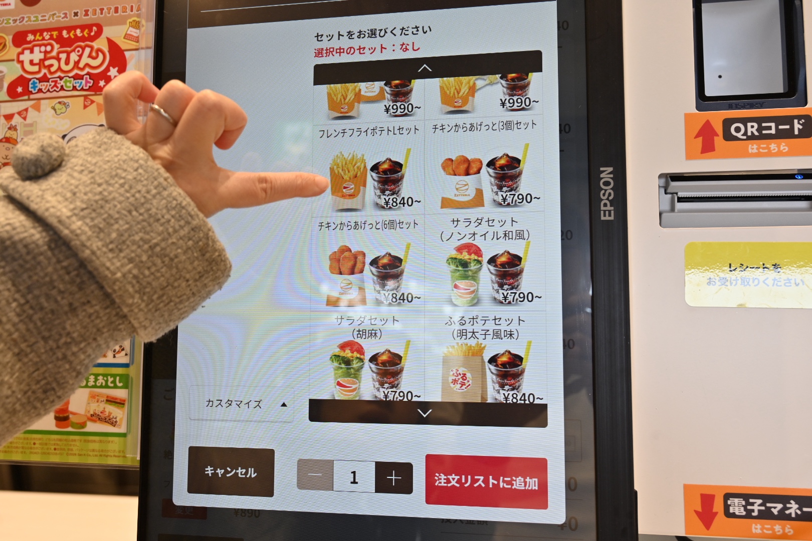 お店に入ると、今までは店員さんに直接注文でしたが、ゼッテリアでは機械でオーダーと注文をするスタイルです。