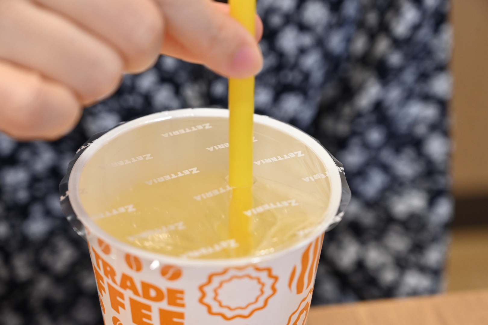 透明なフィルムが貼ってあって、ストローをプス!っと勢いよくぶっ刺して飲むスタイル。