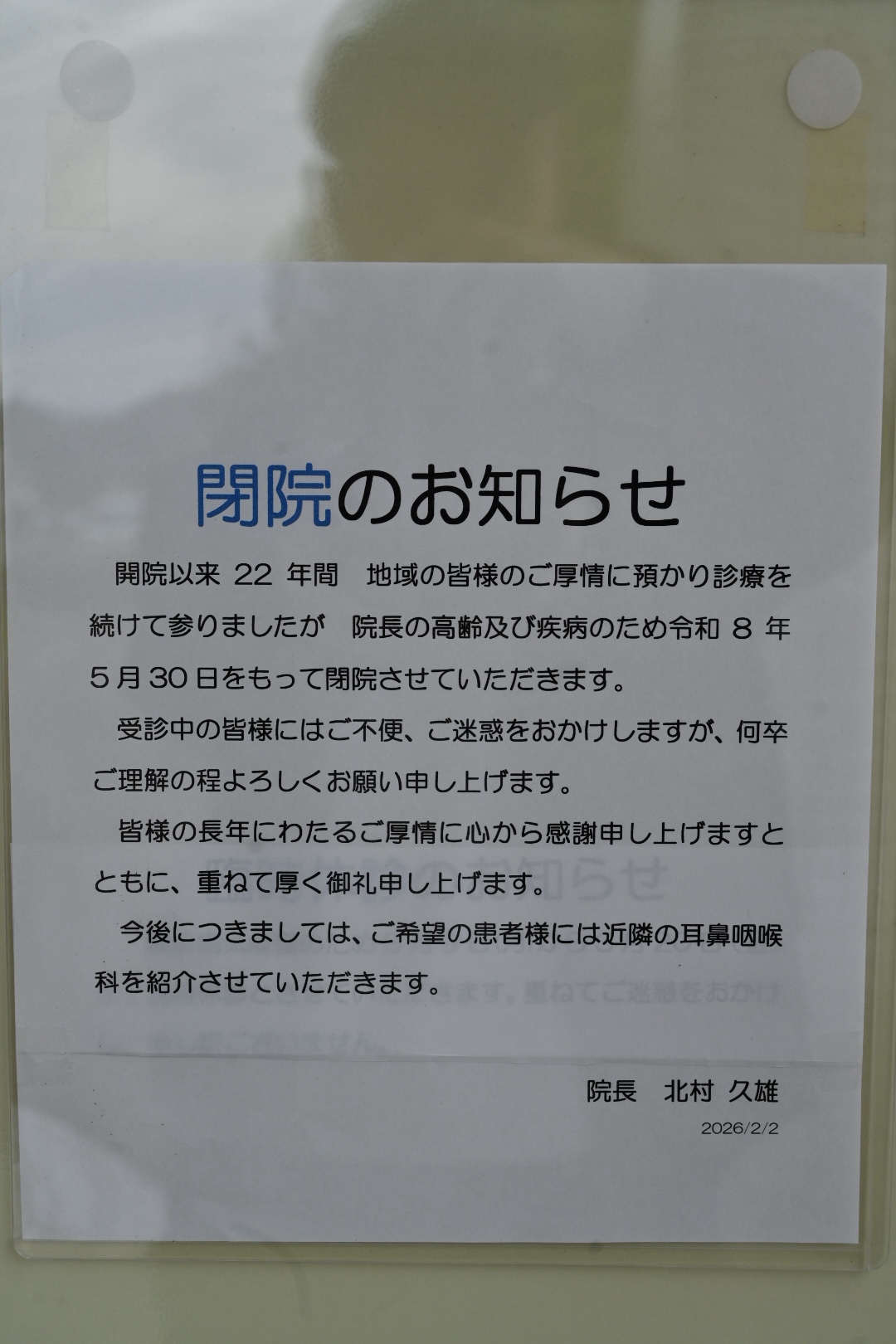猪名川町若葉の北村耳鼻咽喉科が5/30で閉院するみたい。