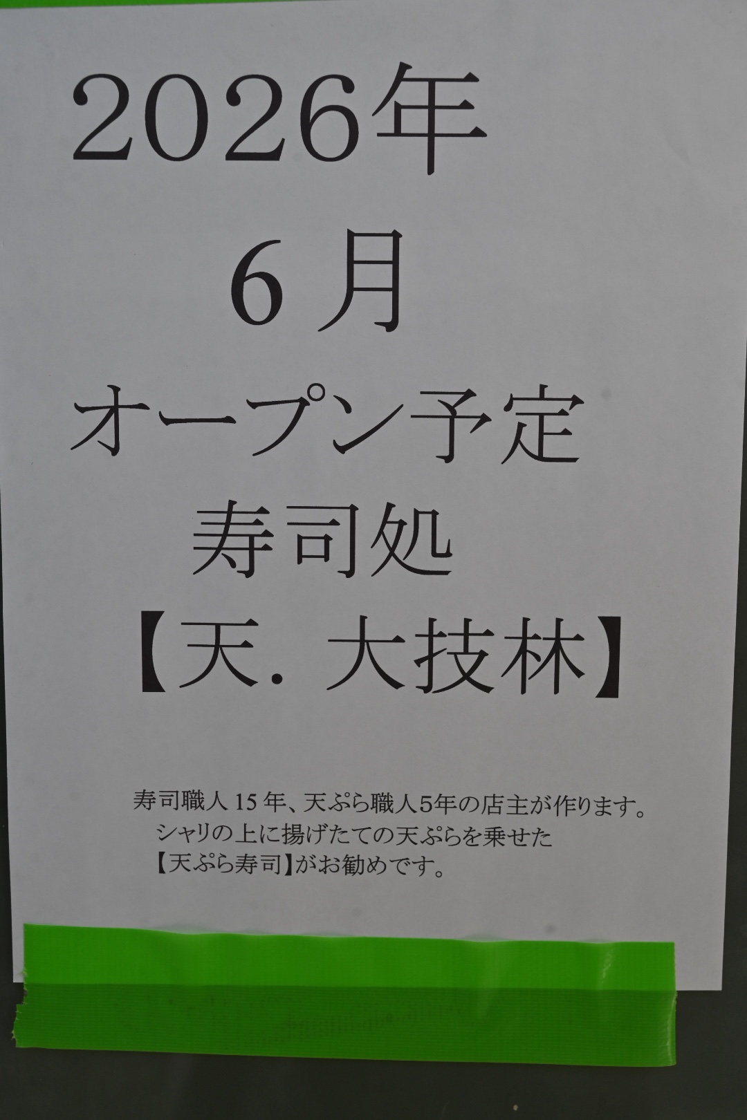 寿司処 天.大技林というお店が6月にオープン予定。