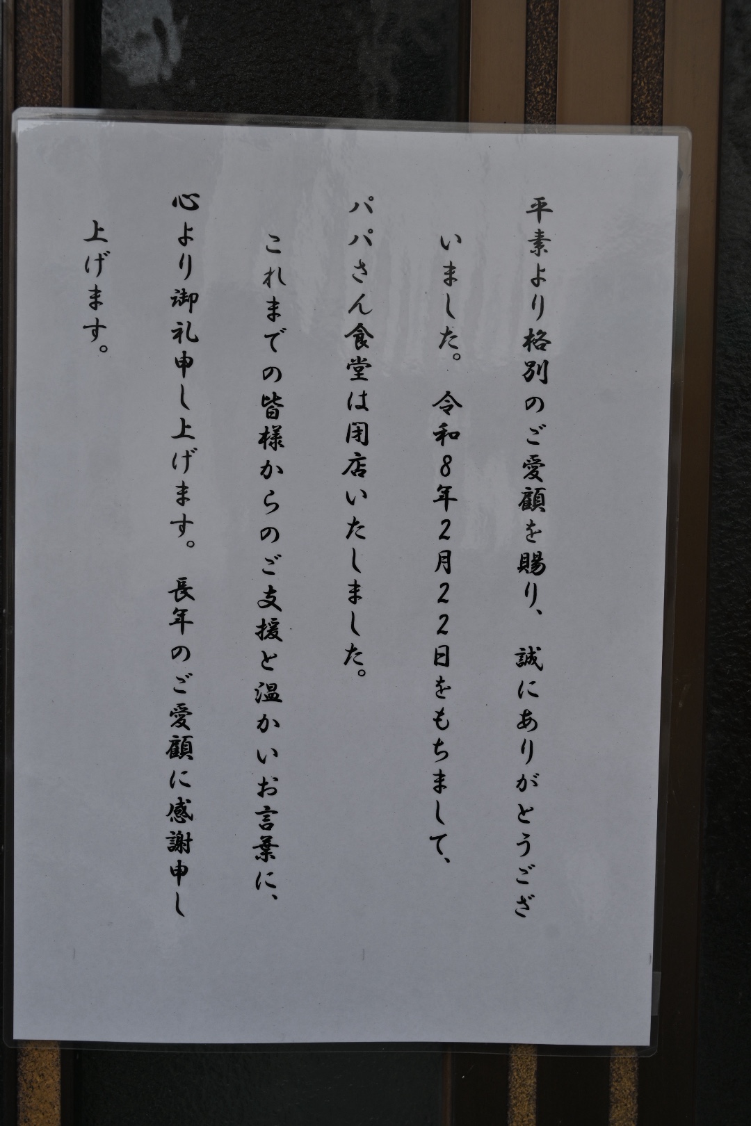 店頭には2月22日で閉店した事を告げる告知が貼ってありました。