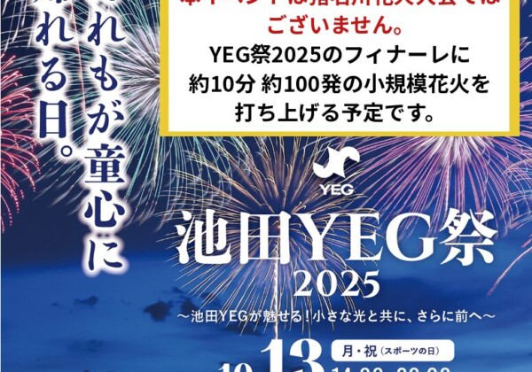 どうも、かわマガ@けいたろうです! イベント情報です! 10/13(月祝)、猪名川河川敷で池田YEG祭っていう花火大会が開催され...