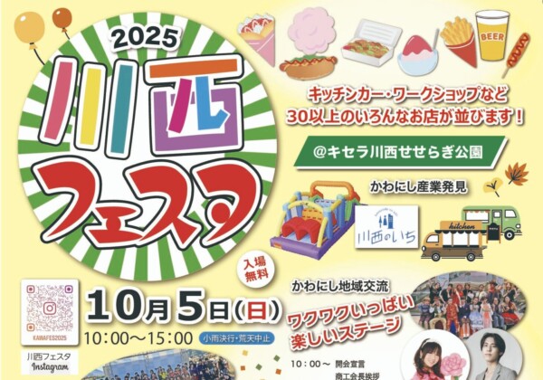 どうも、かわマガ@けいたろうです! イベント情報です! 10/5(日)、キセラ川西せせらぎ公園で川西フェスタが開催されるようです...